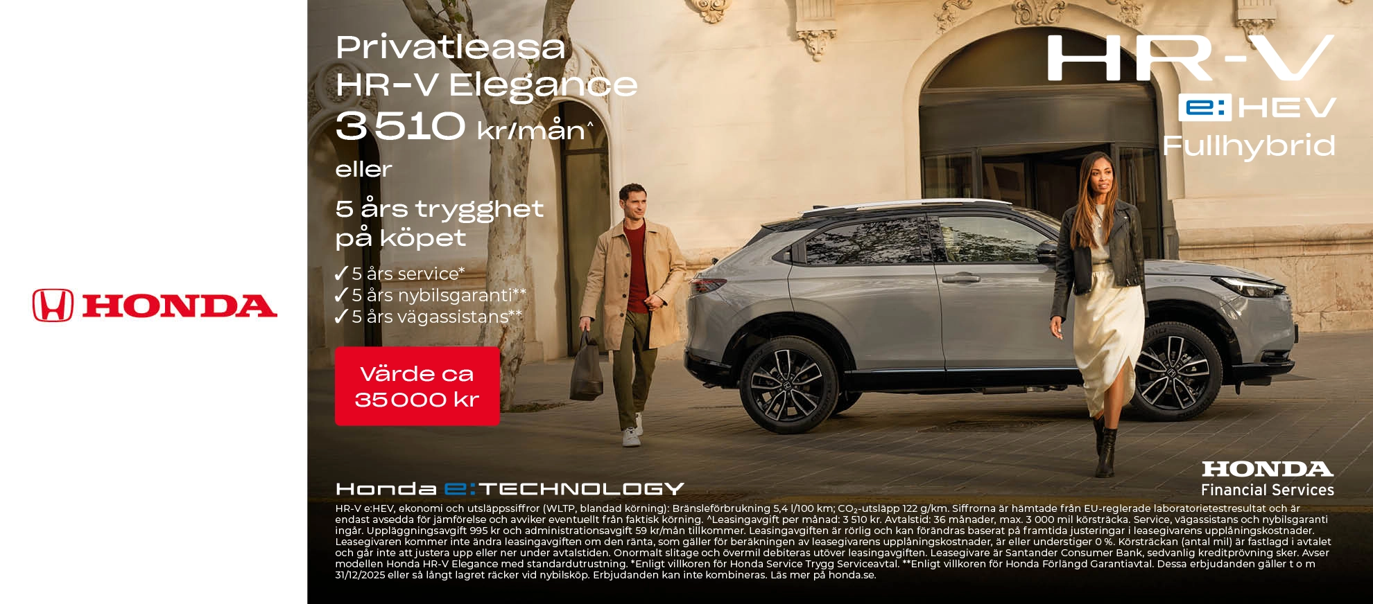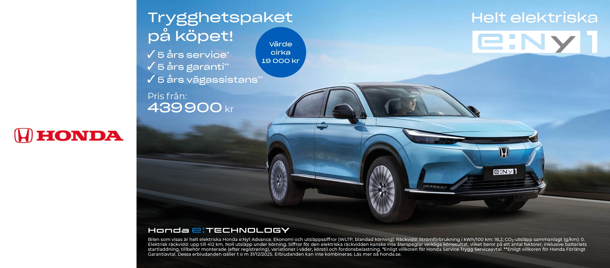Just nu får du som köper en ny Honda E:ny1 5 års trygghetspaket på köpet. Trygghetspaket...