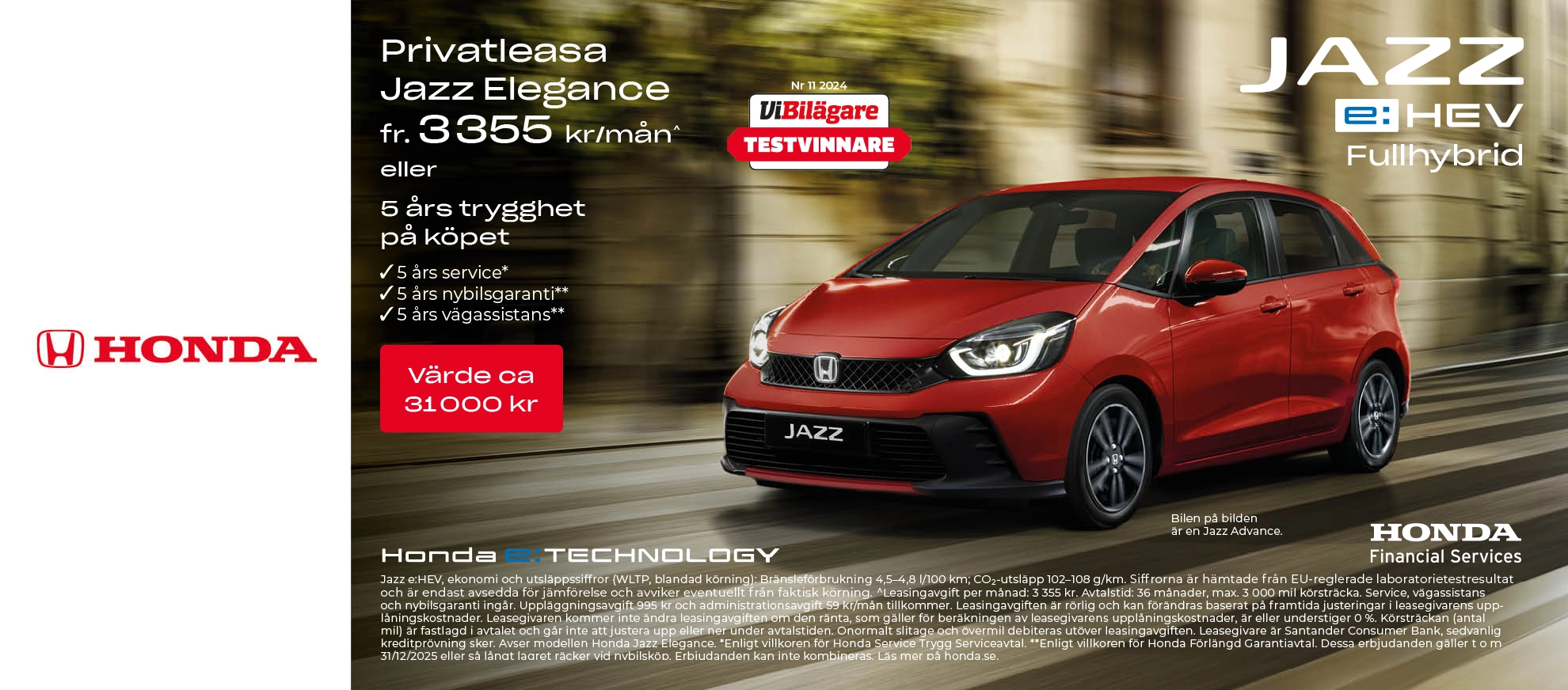 Honda Jazz Hybrid inklusive 5 års trygghetspaket