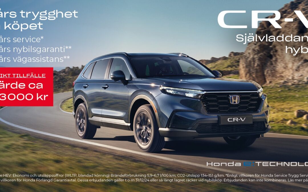 Just nu får du som köper en ny Honda CR-V Hybrid 5 års trygghetspaket på köpet.